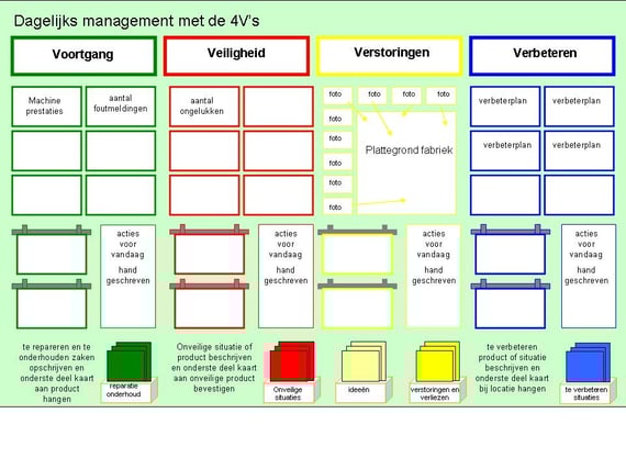 Als laatste V, de V van verbeteren. Door elke dag weer hierbij stil te staan wordt een verbetercultuur gecreeerd, die zienderopgen de doorlooptijd verkort en de kwaliteit verhoogd met als resultaat beduidend lagere kosten en tevreden klanten!! En daar draait het toch allemaal om!!